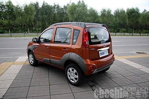 迷你SUV整车设计可爱不失动感,车身尺寸方面长、宽、高分别为3569mm、1611mm与 1595mm。这款迷你SUV配备了运动型侧裙包围、行李架和五幅运动型轮毂,运动感十足。这款小车是目前国内最小的SUV车型,并且采用适时四轮驱动系统,并不是所谓的“花拳绣腿”具有一定得越野通过能力。
