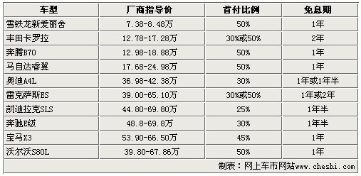 以上我们为大家列举的10款车,都是在贷款购车中做得比较厚道的,零利率政策,让这些商家都在一定程度上得到了一些好处。根据车型价位的不同,各品牌对贷款政策的制订也有所区分。一些价格偏低的车型一般都采用首付50%的方式收取第一笔购车款,而大部分价位较高的车型,首付的金额也就偏低,仅为30%左右。