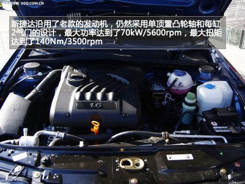 新捷达再次沿用了老款的发动机,这款发动机是目前大众技术最落后的发动机,这款发动机的最大功率达到了70kW/5600rpm,最大扭矩达到了140Nm/3500rpm,EA111发动机跟新捷达无缘。而新捷达1.9L柴油先锋也将沿用现款1.9L柴油发动机,最大输出功率47kW/4000rpm,峰值扭矩125Nm/2200-2500rpm。当发动机都将可变气门正时技术、全铝发动机、缸内直喷技术慢慢普及的时候,捷达却依然沉迷在其单顶置凸轮轴、每缸两气门实在违背大众车系追求先进技术的作风。