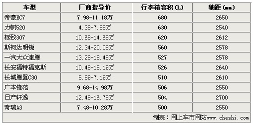 如今,在选购家用经济型轿车的时候人们往往关注这样几个方面,外观设计、空间、配置以及舒适度。当然,价格是排在这些因素前面的。所谓空间,一般指驾乘空间、储物空间和行李箱空间。很多车在满足了驾乘空间后,不得不舍弃一定的行李箱空间。家用车的主要用途一般就是上下班代步、平时购物以及外出游玩。驾乘空间自然是一个很重要的方面,但是,在驾乘空间相同的前提下,能够提供更充足的行李箱空间,也是一款合格的家用轿车的衡量标准。