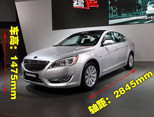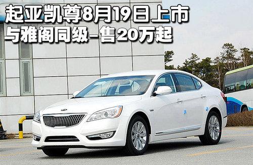 起亚作为韩国知名的汽车厂商,目前中国地区已引进了SUV车型霸锐、新款索兰托、双门轿跑车速迈和佳乐等多款车型,但是在中级轿车方面还是一个空缺。在今年北京国际车展上起亚汽车就展出了全新的中级轿车Cadenza凯尊。近日我们从起亚官方获悉到,全新中型车Cadenza凯尊将于8月19日正式在国内上市。据悉上市初期只有两款2.4排量车型,售价20万起。起亚Cadenza凯尊提供8种车身颜色,包括珍珠白、乌木黑、银白、缎纹金、石墨金、金属铜、明亮黑和樱桃黑。