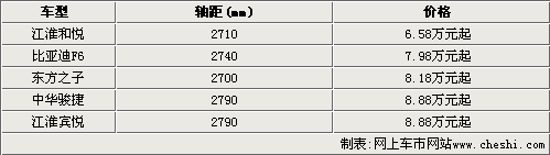 按照国际汽车级别分类惯例,轴距大于2.7米以上基本上可以归类为B级车型,我们今天也挑选了五款B级轿车推荐给大家,有所不同的是,这些车型的价格都不超过10万元。其中骏捷和宾悦的轴距几乎接近2.8米,而价格却都是8.88万元起,完全可以满足消费者对经济性和空间感的追求。