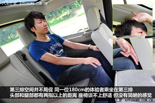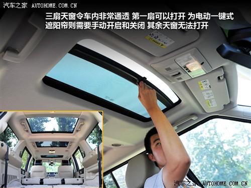 发现没有采用全景天窗的设计让人遗憾,不过前后三个独立的天窗也能带来非常出色的采光效果。在三排座椅全部打开的情况下,后备厢可以使用的空间会非常小,所以建议平时还是收起第三排座椅为好,而将第二排座椅也放倒后,它的最大深度可以达到1910mm,不过地板并不是完全平坦的影响了实用性。
