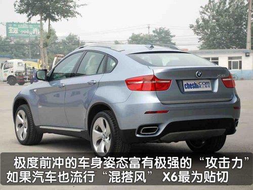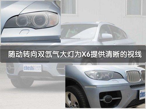 透过宝马X6的正面造型,可以清楚的看到它身上所具备的宝马基因。而在侧面位置可以将宝马X6分为上下两层看待,上半部分俨然是动感十足的跑车造型,而下半部分则是经典的宝马SAV车型。此外,双肾形散热格栅造型与宝马其它车型统一,在正面视觉效果上X6与它的同门师兄X5倒是颇有些相像。