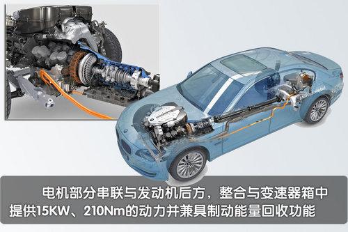 全新BMW高效混合动力7系的动力系统,包括一台具有双涡管双涡轮增压技术、HPI高精度直喷系统的V8汽油动力单元和一台3级同步电动马达,动力系统总共可以提供342千瓦/465马力的输出功率和700牛米的强大扭矩。BMW高效混合动力7系从静止加速到100公里/小时只需4.9秒,最高车速由电子限速器控制在250公里/小时。同时,在欧盟标准测试循环中,综合耗油量仅为9.4升/100公里。