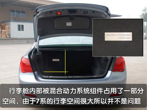 在外观部分的辨识性上,混合动力7系轿车采用了唯一的海蓝色漆面喷涂。配合分布在车身侧面、车尾的“Active HyBrid 7”字样,让大家很容易就能够看出这是一台与众不同的宝马7系轿车。而由于电池组的关系这台7系混合动力车型的行李空间也有所减少,但是相对于7系轿车充足而宽大的后备箱容积来说减少的部分不会为实际的使用泰来太多的不便。