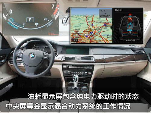在仪表台部分混合动力7系轿车的油耗显示区域与普通车型明显不同,它的指针从“Active HyBrid ”开始,指针指向这个部分的时候代表并不会消耗燃油。而混合动力7系轿车的电机部分并不能单独支撑车子行驶很长的时间,它更多的作用是为了辅助引擎,以及在车辆制动和滑行过程中收集制动能量转化为电能储存在电池中。