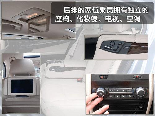 堪比头等舱环境的后排空间可以乘坐两名乘客,他们分别都有自己的独立座椅。可以进行多向调节(甚至是调节成一个大沙发)。同时腰部支撑、2组位置记忆也都是BMW对于后排乘客的周到考虑。BMW新7系轿车拥有人性化的4区域空调,车内每一位乘员都能够拥有自己最合适的温度环境。此外后排空间人性化配置还包括电动的遮阳帘和带照明的化妆镜。此外新7系轿车除740豪华型外,其它配置车型都带有后排手持电话机,可以直接插入SIM卡进行电话拨打,同时也为驾驶者提供了蓝牙免提电话准备功能(740li豪华型有此配置)。