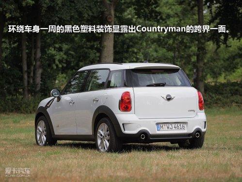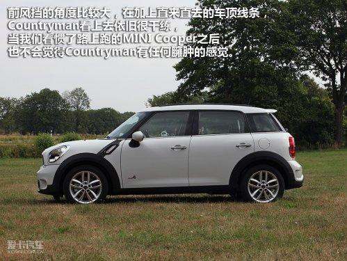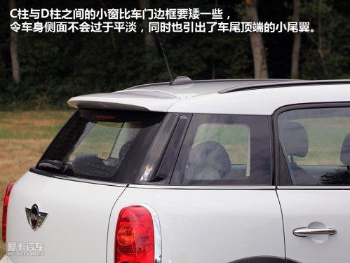 MINICountryman的造型比例比较协调,车头部分所占的比重刚刚好,前风挡的角度比较大,在加上直来直去的车顶线条,Countryman看上去依旧很干练,当我们看惯了路上跑的MINI Cooper之后,也不会觉得Countryman有任何臃肿的感觉。C柱与D柱之间的小窗比车门边框要矮一些,令车身侧面不会过于平淡,同时也引出了车尾顶端的小尾翼。环绕车身一周的黑色塑料装饰无疑显露出Countryman的跨界一面。