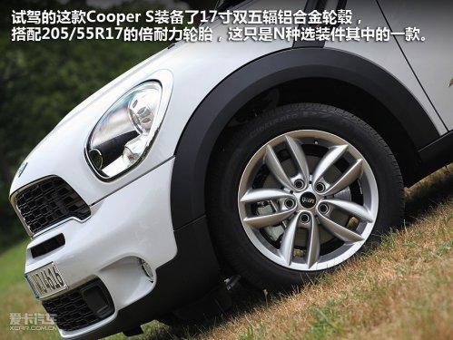 试驾的这款CooperS装备了17寸双五辐铝合金轮毂,搭配205/55R17的倍耐力轮胎,这只是N种选装件其中的一款。不过似乎在购买MINI时,你要考虑好用什么样的车身颜色搭配什么车顶再搭配哪款轮毂,不同的轮毂也可以选择不同的颜色,还有是不是要将进气格栅、后视镜等等换成镀铬装饰……这真的需要一定的美学基础。