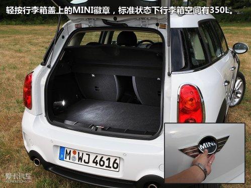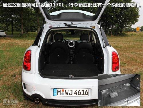 既然厂方说Countryman是最实用的MINI,那么行李箱空间肯定会成为用户仔细考量的一处。轻按行李箱盖上的MINI徽章,标准状态下行李箱空间有350L,通过放倒座椅可扩容至1170L,在行李箱底部还有一个隐藏的储物格。怎么样,够用了吧!