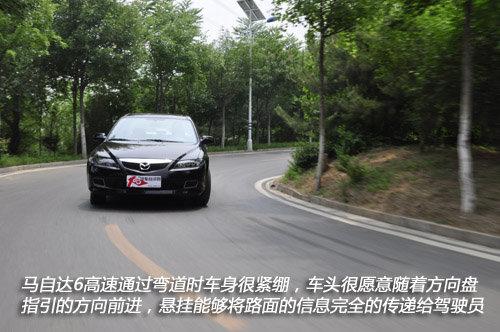 马自达6采用了前双横臂后多连杆结构的车型,稳定性和操控性很出色。高速通过弯道时车身很紧绷,车头很愿意随着方向盘指引的方向前进,悬挂能够将路面的信息完全的传递给驾驶员,韩泰的K407轮胎抓地力也让人满意,车尾跟随性不死板,驾驶员有信心以更高的速度攻入下一个弯道。