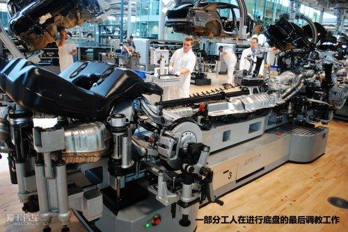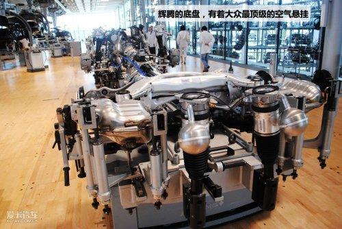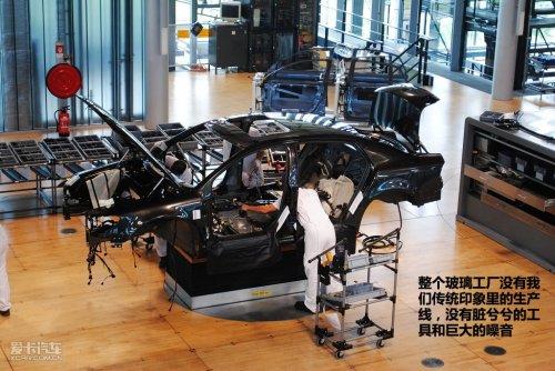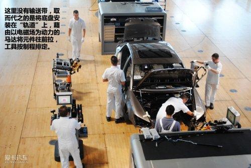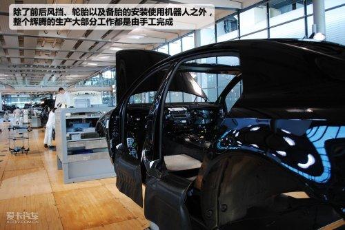 这里没有输送带,取而代之的是将底盘安装在“轨道”上,藉由以电磁场为动力的马达将元件往前拉,工具按制程排定。在整个玻璃工厂,各种零件的配送都是用无人驾驶的车辆自动进行,车上装有感应器,可以自动避让行人。而除了前后风挡、轮胎以及备胎的安装使用机器人之外,整个辉腾的生产大部分工作都是由手工完成。