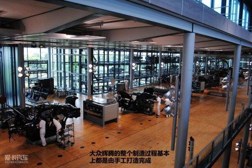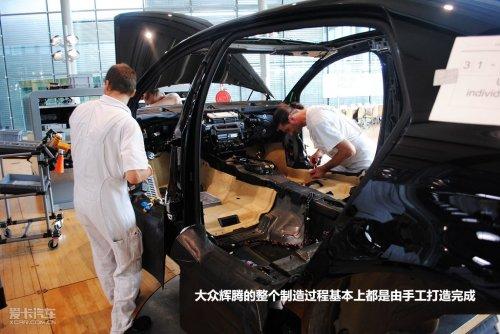 大众辉腾的整个制造过程基本上都是由手工打造完成。整个玻璃工厂没有我们传统印象里的生产线,没有脏兮兮的工具和巨大的噪音。玻璃工厂里的淡桔色枫木地板,映衬着身着洁白服装的工人,一切都似乎不像是在生产一辆汽车。