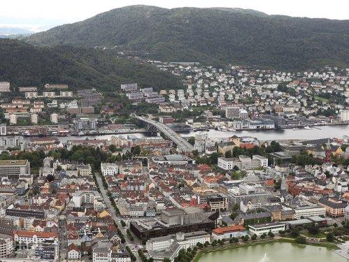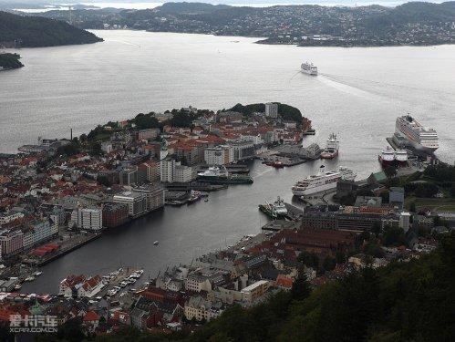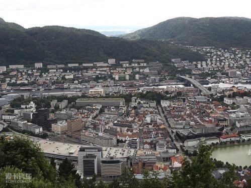 在布里根镇的旁边(卑尔根真的很小,景点一个挨一个),就是非常著名的Floibanen缆车,这是整个斯堪的纳维亚地区唯一的一个有轨电缆车,乘坐它可以直达海拔320米的卑尔根屋脊,在山上可以鸟瞰整个卑尔根,风景绝佳,而且到达山顶后真的有心旷神怡的感觉,眼前有山、水、城市、天空,并且每一样都是那么的干净整洁,拿起相机吧。