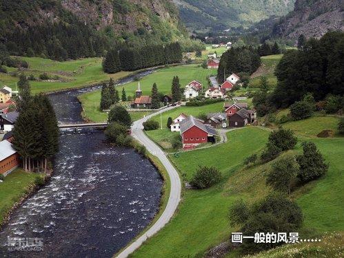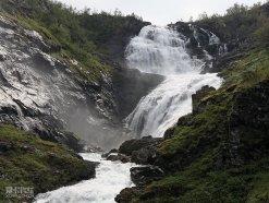 终于要去松娜峡湾了,在这之前我们还经历了缆车、晚餐、睡觉等一系列过程……经过将近两个小时的路程,终于到达了弗洛姆。在这里可以乘坐山地火车和轮船,说是山地火车,其实外表很像我们的“绿皮车”,车厢里干净整洁,从弗洛姆到山顶往返需要将近两个小时,中途会停车,参观一些自然景观,不过一路上只有这个还算壮丽的瀑布吸引了我。