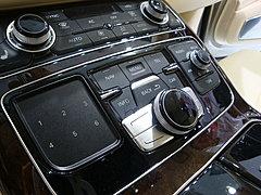 其从驾驶舱的中控台的位置一直延伸后后排乘客空间,所配置的实用配置包括供书写使用的小桌板以及冰箱。独立操作的后排空调为该车的标准配置。豪华的四区自动恒温空调将通过不少于25个的可调电动机来控制。