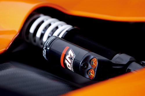 好吧,对于一台纯赛车我还能指望什么呢,舒适性还是内饰的美感?显然这些都不是Radical所关心的问题。这台车所用的方向盘比X-BOW上的直径还小,另外方向盘的背面还有换档拨片,但技师告诉我说这并不是什么时髦的双离合器或者电子序列式变速结构。它仍然是很传统的纯机械式序列变速箱,为了延长变速箱的使用寿命,降档时最好使用离合器,另外在升档时前3个档也最好踩离合器。最后的忠告则是千万不要让发动机超过转速,因为这台发动机不像X-BOW上的TT发动机那样拥有转速保护装置。