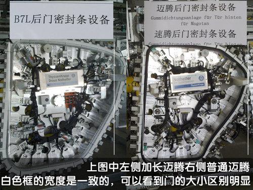 是的,在生产线上记者确实看到了写有“B7L”字样的车门试装区域,但是厂家工作人员在这个部分是不允许拍照的所以没有详细照片。但是从车门的“夹具”(这是我们自己起的名字)来看,不同的迈腾(B7)与加长后的迈腾(BL),在门的大小上有非常明显的区别,并且我们从工作人员那里也获得了B7L是加长迈腾的肯定答案。
