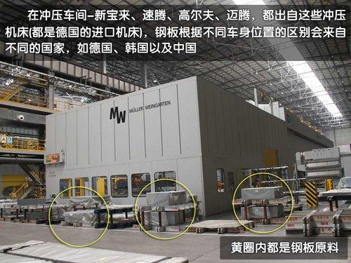 冲压车间内包含多个这样的冲压机床,这些机床都是来自德国进口设备。虽然价格很高,但是一汽大众的和保有量都很高,所以对于一汽大众这样的厂家来说就不会凸显进口设备的高成本,而一般的产量较小的厂家要么是买不起进口机床要么就是生产出来以后车辆的价格下不来。