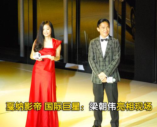在一段歌舞后,影帝梁朝伟身穿条格西服出现在了舞台上,接受了华晨宝马CEO康思远的采访。朝伟是一位在华人社会具有影响力的香港著名实力派演员,因为出色的演技以及曾经囊括多个电影奖项又被传媒称为“影帝”。