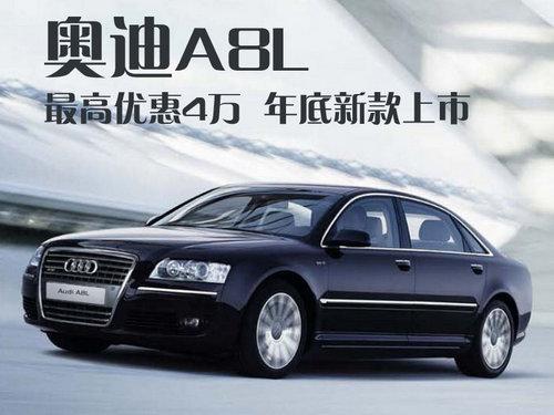 据北京地区奥迪4S店销售人员介绍:全新奥迪A8L年底即可与消费者见面,目前还不接受预订。而现款的奥迪A8L中,2.8和3.0的车型均有4万元的优惠,其中2.8标准型和3.0豪华型有黑色现车,并且数量也不多。想预订3.0标准型和尊贵型的消费者需交10万元的车款作为订金,等待1个月即可提车。而4.2和6.0的车型店内均无现车且不接受预定。