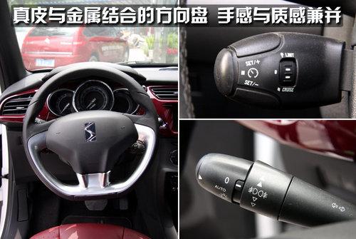 方向盘打破了以往车型的设计,DS3采用了赛车方向盘的理念,不过镀铬及真皮的组合奠定了它依然是追求时尚个性更多一些。方向盘后面的控制杆我们依然很熟悉,集成了定速巡航及音响、蓝牙电话的控制。