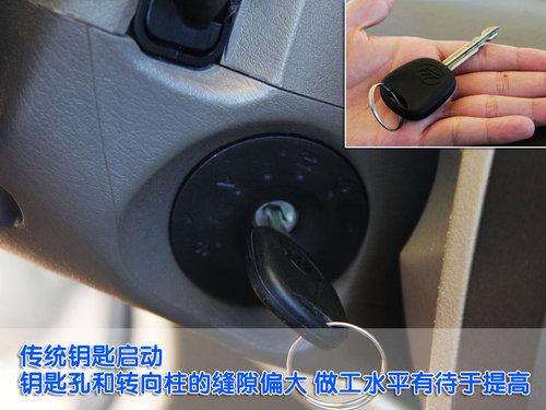 力帆520i采用传统钥匙启动,钥匙孔周围与转向柱的接缝偏大,整个转向柱的塑料感比较强,钥匙也略显单薄,整体做工水平还有待于加强。