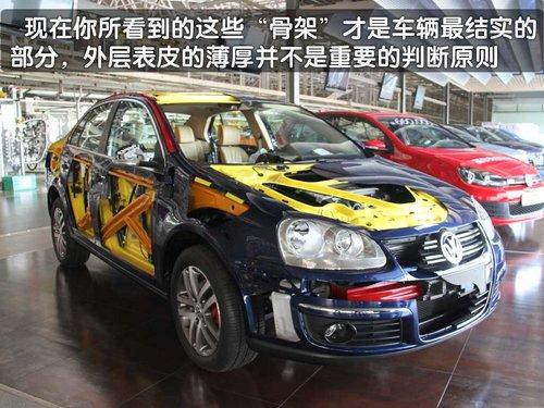 速腾并非大众在中国市场投放第一款车型,但继捷达以“皮实、耐用”被消费者认可之后,速腾以“安全、可靠”为一汽大众赢得了新的口碑。速腾作为国内精品A级轿车受到了很多消费者的关注。而对于一款A级紧凑轿车而言整车的安全性对于每一位消费者都是不得不关注的重点,那么下面我们就来通过一台速腾的解剖车去了解一下它的内部构造究竟是什么样的。