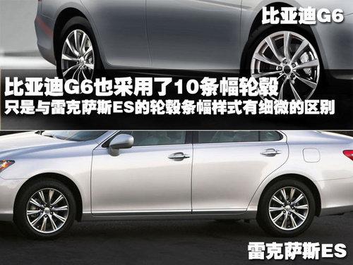 比亚迪G6采用的是10条幅铝合金轮毂,目前还不确定轮胎的尺寸。但我们可以从轮毂样式上看出来,比亚迪G6模仿雷克萨斯ES的确非常仔细,这两款车只有轮毂条幅的样式有很细微的区别。多条幅的轮毂样式看上去带有几分运动感,似乎与比亚迪G6整车的豪华定位略有不符。