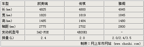 广汽传祺的长宽高分别为4800mm、1819mm、1484mm,轴距为2702mm,比凯美瑞和雅阁都要小一些。在动力上搭载广汽自主研发的4B20K1发动机,匹配5速手自一体变速器,发动机采用了缸内直喷等先进技术,升功率大于60千瓦、升扭矩大于100牛米,动力澎湃又十分节油,排放达到的国四新标准。