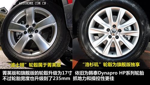 如果您愿意花更多的银两,则可选择途观的菁英版和旗舰版,中高配车型菁英版采用了5辐17寸的“波士顿”轮毂,比中低配车型的“圣地亚哥”要略微动感一些,而最漂亮的“洛杉矶”17寸轮毂只能在旗舰车型上见到。菁英版和旗舰版同样采用的是韩泰Dynapro HP系列系列轮胎,但是尺寸已经升级到235/55 R17,235mm的宽度也使得车辆的抓地力更强,从而使刹车性能和操控性更上一层楼。