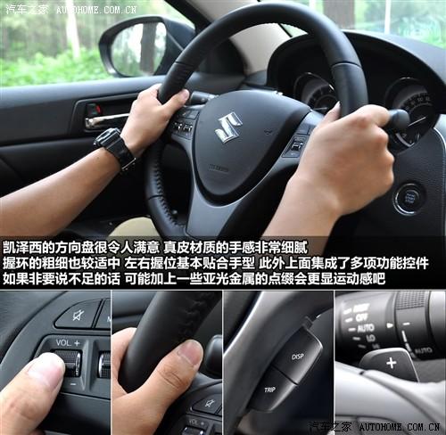 进入车内坐在驾驶席上,凯泽西的方向盘首先得到了我们的认可。作为一款运动车型,方向盘的手感直接影响到驾驶者的感受,而凯泽西装备的这款方向盘无论是材质做工还是功能表现我们都挑不出有什么不足。音量调节是通过方便顺手的拨轮方式实现的,左右握位的造型也很贴合手型,还带有换挡拨片,一款运动型车该有的凯泽西基本都做到了,只是如果要加入点亚光金属元素的点缀就更好了。