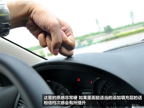 但我们并不太喜欢中控台的覆盖材质,尤其是中控台顶部,由于缺少填充物这里完全是硬梆梆的。没有亲和力的手感让人觉得不够显档次。而金属装饰之下的部分虽然里面有填充层,但摸上去只比顶部略软一点,依然谈不上触感细腻。