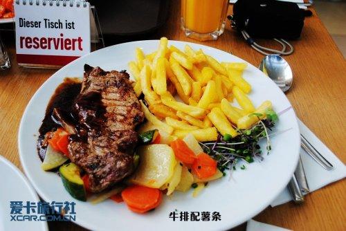 至于午餐,我想我们在狼堡和德累斯顿的两顿午餐最具代表性。狼堡大众公园内的餐厅每天要供应数千人吃饭,在这里的主菜多半是一块炸好的鸡胸肉或者牛排肉,配上酱汁。副食则可在饭、面、马铃署、生菜沙拉以及优酪乳、罐头水果中选几样搭配。这是在德国最常见的午餐,一般普通人都选择这样的吃法。