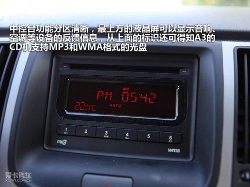 中控台功能分区清晰,最上方的液晶屏可以显示音响、空调等设备的反馈信息,从上面的标识还可得知A3的CD机支持MP3和WMA格式的光盘。中控台中央的区域是音响控制面板,想用熟练还需要简单的适应。