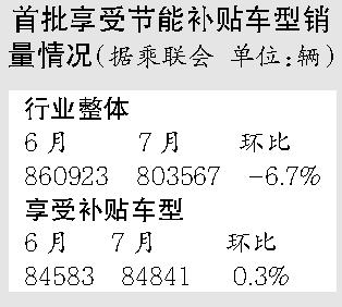 本报讯 (记者刘俊)国家近日出台了消费者购买节能汽车按每辆3000元补贴的政策,最新统计显示,取得资格的车型在7月汽车销售淡季仍然录得销售增长,显示政策受到市场欢迎。