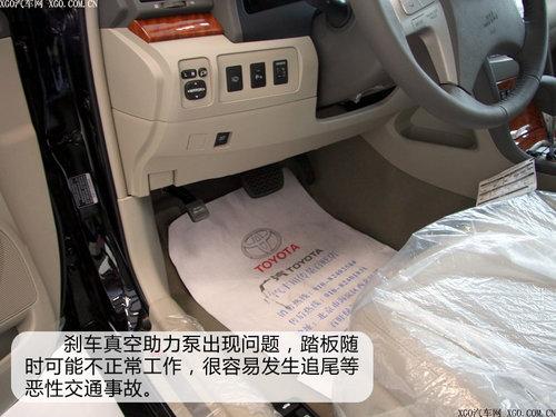 凯美瑞可能是近几年,丰田国产车中销量最好的产品了,但09年至今,它却以并不光彩的形象频繁出现在召回名单上:先是刹车真空助力泵出现了问题——在高气温或刹车使用频率高的极端使用情况下,真空助力泵内部的配件可能产生变化,导致刹车踏板不能以正常力度踩下、出现漏气异音、发动机故障灯亮等情况。出现这种情况时,要获得充分的制动力,就需要比以前更大的刹车踏板踩踏力。