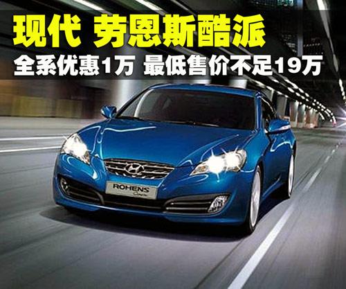 据现代4S 店销售人员介绍,目前购买劳恩斯酷派全系车型可优惠现金1万元,另外还赠送价值5000元的车辆装饰,较前段时间在优惠上有所加大。入门级车型优惠后最低 售价为18.9万元。现车方面,店内有2.0T豪华版及靓雅版现车供应,现车颜色以蓝色、红色、银色、灰色为主。3.7L车型需要预订,订金为1万元,需 等待1个月左右时间可以提到现车。如消费者有意购买,到店详谈会有更优惠的价格。北京地区各4S店由于订单不同,各店销售的现车颜色有所不同。