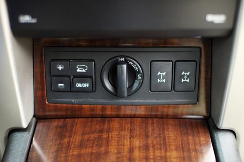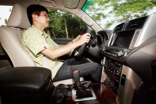 这款车的道路表现也很有些豪华轿车的味道。底盘依旧是我们熟悉的沉稳风格,同时又比上代增添了几分厚重感,于是路面坑洼基本不会给乘客带来任何不适,与早年间那种硬桥硬马的硬派越野车有着天壤之别。这显然也是普拉多得到广泛青睐的重要原因。此外,这辆VX NAVI版试驾车的后桥采用了空气悬架,可以根据负重情况自动保持恒定底盘高度,而且允许驾驶者根据自己的口味从运动、标准和舒适三种模式中选择最合适的减震硬度。当然,碾到凹陷的井盖时,车尾多少会产生一些横向扭动,但你要知道,这是由非独立式后悬架的结构决定的,无法从根本上避免。
