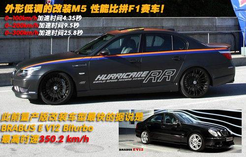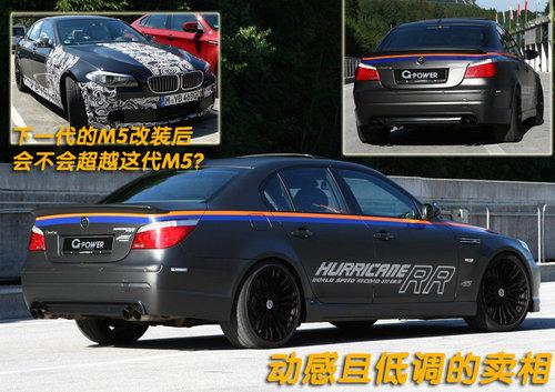 搭载更强动力的全新宝马M5即将于明年的法兰克福车展首发,而就在新款车型上市前,“疯狂”的德国改装名厂G - Power悄无声息的制造出了一辆命名为“G-Power M5 Hurricane RR”的中级车型。工程师们精心的将老款M5打造成了一款时速达372km/h的“猛兽”号称“世界上最快的四门轿车”,其性能比拼F1赛车。那不知道即将上市的新款M5是不是有很大的压力。