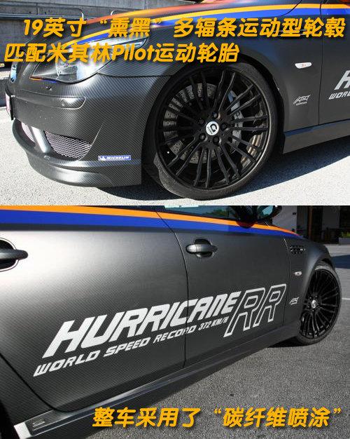 加装涡轮调校后,这具发动机的性能参数得到了质的飞跃。最高输出功率比普通版M5高了近300马力,而最大扭矩则增加了280nm。仅仅开这表明的参数我们就不会怀疑G-Power M5 Hurricane RR的强劲动力性了。