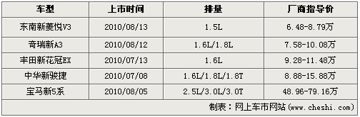 紧凑级型车在近期改款上市阵营中占用绝大部分的份额,其中包括东南汽车旗下V3菱悦、奇瑞新A3、丰田花冠EX以及中华骏捷。四款车型都属于小改款车型,在原有车型核心技术不变的基础上,外观和配置方面做出改变求新意。宝马全新5系是5款车中唯一一款换代产品,相比起老款车型,各个方面都有着长足的进步,尤其是轴距的加长,迎合了很多国内消费者的口味。