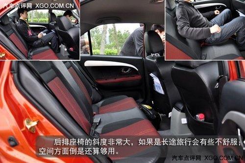 空间不是V3菱悦的长项,在前排调节舒适的情况下,后排的乘客能享有的空间已经非常有限了,而且由于后排座椅的斜度非常大,后排乘客长时间乘坐感觉一定不会太舒服。