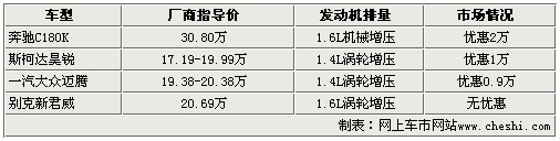 以上5款中级车当中,斯柯达昊锐和迈腾均使用了大众研发的1.4T发动机,新君威采用了1.6T发动机,最近上市的奔驰C180K则搭载了一台1.6L机械增压发动机。增压发动机对于这4款既有面子又有里子的车来说,绝对够用。动力输出也不会逊色于同车型的大排量版本。