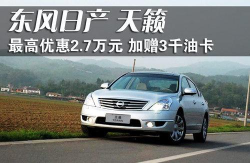 据北京东风日产4S店销售人员介绍,目前新天籁2.5L全系优惠最高可以达到2.7万元,2.0L车型全系可以享受到2.4万元的现金优惠,同样加赠3000元油卡,最低售价仅为16.68万元。现车颜色方面有黑色、红、白、银紫色,其中红色和白色的优惠幅度相应比别的颜色少两千,同时各经销店内有试驾车可供消费者体验。由于各店的订单不同,各店销售的车型和颜色有所不同。