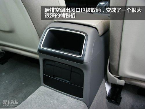 A4L政府公务版并没有为后排乘客提供空调出风口,在其位置取而代之的是一个开口超大,也很深的储物格,一眼看上去真有些“粗犷”。而12V车载电源算是比较实用的一项配置。