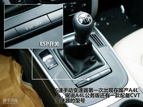 此次拍摄的这款A4L政府公务版为手动车型,但据商家透露A4L政府公务版还将推出CVT车型。比较令人兴奋的是,这台手动变速器为6前速,使其成为市面上奇货可居的6速手动车型,而驾驶手动奥迪A4L相信对广大喜爱操控的车迷也是一个不小的诱惑。