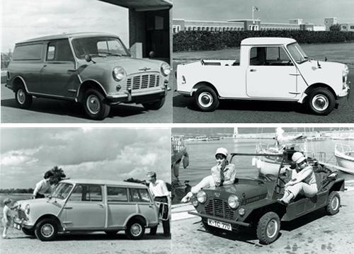 1960年到1964年之间,为了吸引不同的客户,Mini还衍生出多种不同的车型,从旅行车、微型客车到皮卡车各种车型应有尽有。