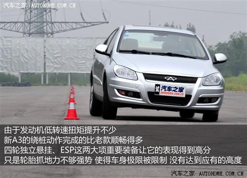改款奇瑞A3的对动力系统也进行了革新,换装了新的1.6升DVVT发动机,扭矩和功率分别增加了13牛米和5.5千瓦,汽车之家的0-100Km/h实测成绩为12.02秒,虽然不算突出,但相比之前的1.6升车型已经有了明显的提升;刹车成绩相对之前测试的老款车型来说并没有什么提升,平均43.6米的成绩不算理想。